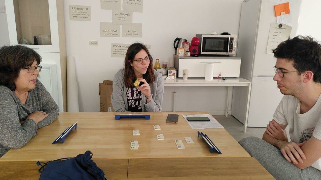“De casualitat teníem una ràdio amb piles a la sala, i unes veïnes van baixar a buscar-la i ja ens vam ajuntar unes quantes. Vam posar un fogó de càmping gas i vam cuinar i dinar juntes a la sala… Vam estar pràcticament fins al vespre fent jocs de taula, escoltant la ràdio, llegint… i passant l’estona allà. La gent anava passant, saludaven, es quedaven una estoneta… En fi, la veritat és que molt bé”, explica l’Eva Prats, veïna del projecte.