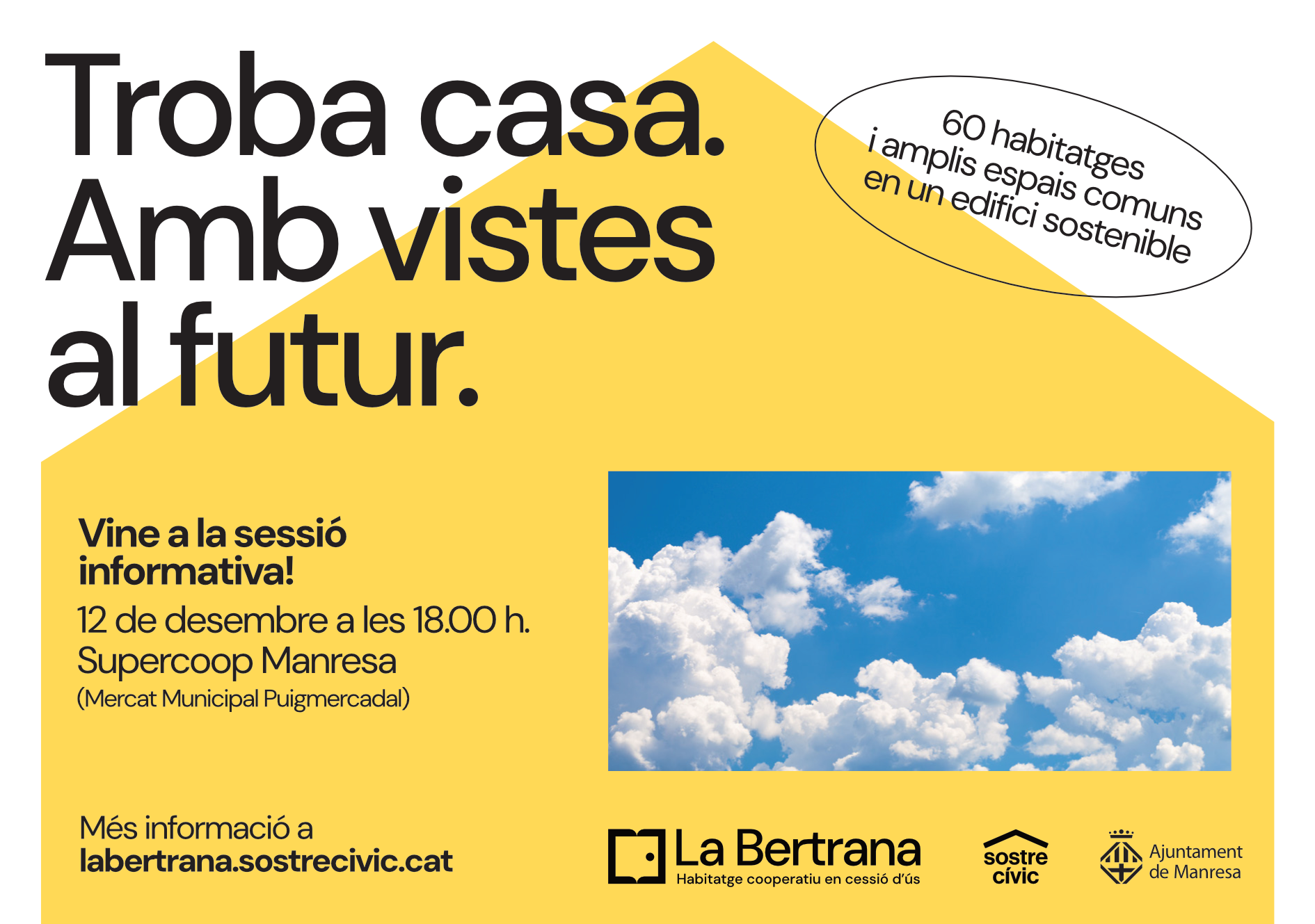 Et presentem La Bertrana, un nou projecte d’habitatge cooperatiu en cessió d’ús a Manresa, i el segon de la cooperativa en aquest municipi. Aquest projecte constarà de 60 habitatges de protecció oficial i 336 m² d’espais comunitaris. Se situa a carretera del Pont de Vilomara, número 121, fent cantonada amb el carrer Pilar Bertran, i entre els barris de Viladordis i la Balconada, en uns terrenys municipals.