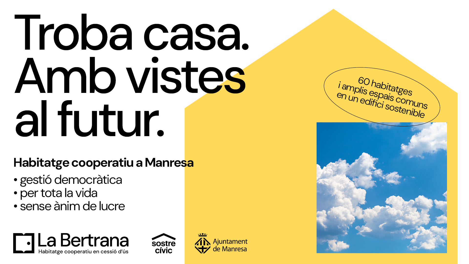Et presentem La Bertrana, un nou projecte d’habitatge cooperatiu en cessió d’ús a Manresa, i el segon de la cooperativa en aquest municipi. Aquest projecte constarà de 60 habitatges de protecció oficial i 336 m² d’espais comunitaris. Se situa a carretera del Pont de Vilomara, número 121, fent cantonada amb el carrer Pilar Bertran, i entre els barris de Viladordis i la Balconada, en uns terrenys municipals.