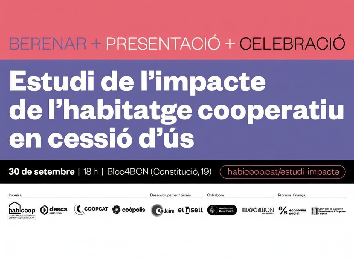 Coòpolis organitza l’acte de presentació del primer estudi integral sobre l’impacte del model d’habitatge cooperatiu en cessió d’ús a Catalunya, impulsat per la Federació de Cooperatives d’Habitatge (Habicoop) en el marc del grup de treball DadESS de l’Estratègia #ESSBCN2030.