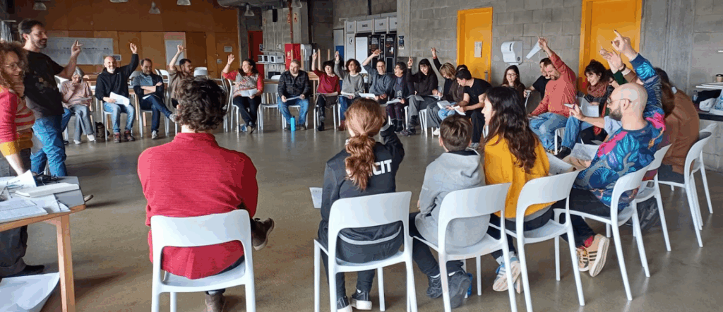 Durant la jornada, les sòcies van compartir una estona alegre i participativa per conèixer-se millor: qui és qui, què els mou, què aporta cada persona. Van començar coneixent a les artistes del grup, les que fan les millors truites, les que somien amb les constel·lacions de l’univers i a les quals s’adreçaran quan se’ls espatlli l’aigüera. I d’aquí, van començar a somiar juntes quina comunitat volen construir.