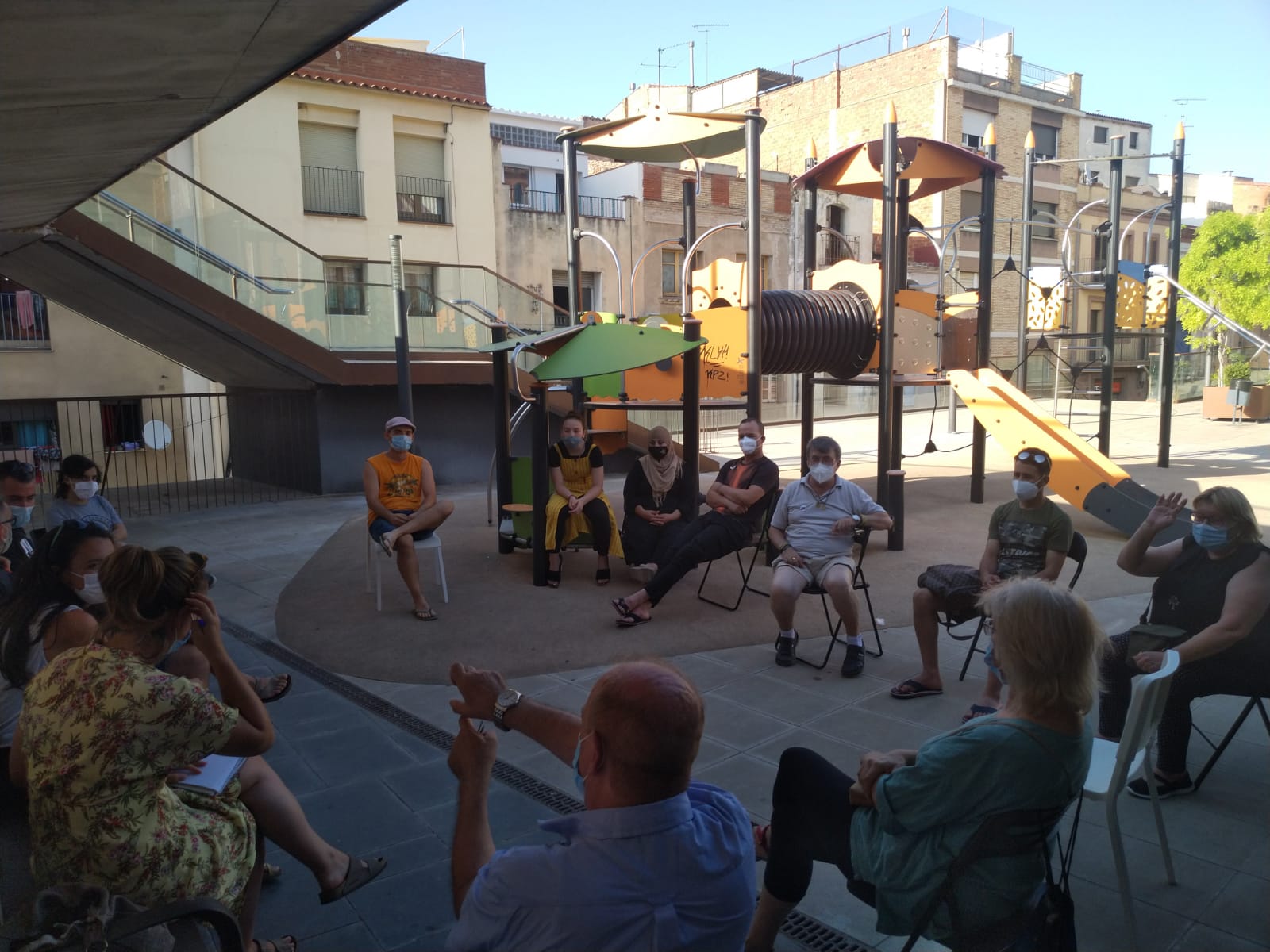 - Enraizamiento territorial: Nuestras comunidades se integran en el barrio, promueven actividades abiertas y comparten los espacios compartidos y locales con el entorno. Esto fomenta la cooperación, la participación vecinal y el vínculo con el territorio.