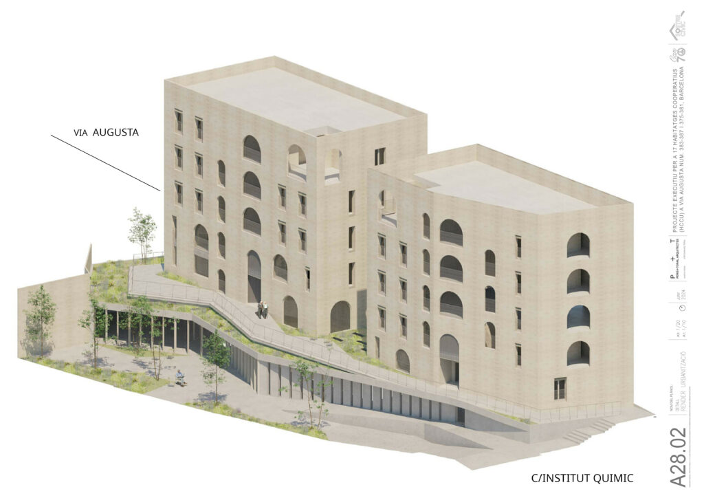 El projecte comptarà amb 39 unitats d’ús: 10 habitatges convencionals i 29 en unitats agregades, els quals combinaran espais privats i cuines compartides amb veïnes de la mateixa planta. La promoció està dissenyada per l’equip d’arquitectes Peris+Toral, qui va guanyar el primer concurs d’idees impulsat per la cooperativa Sostre Cívic.